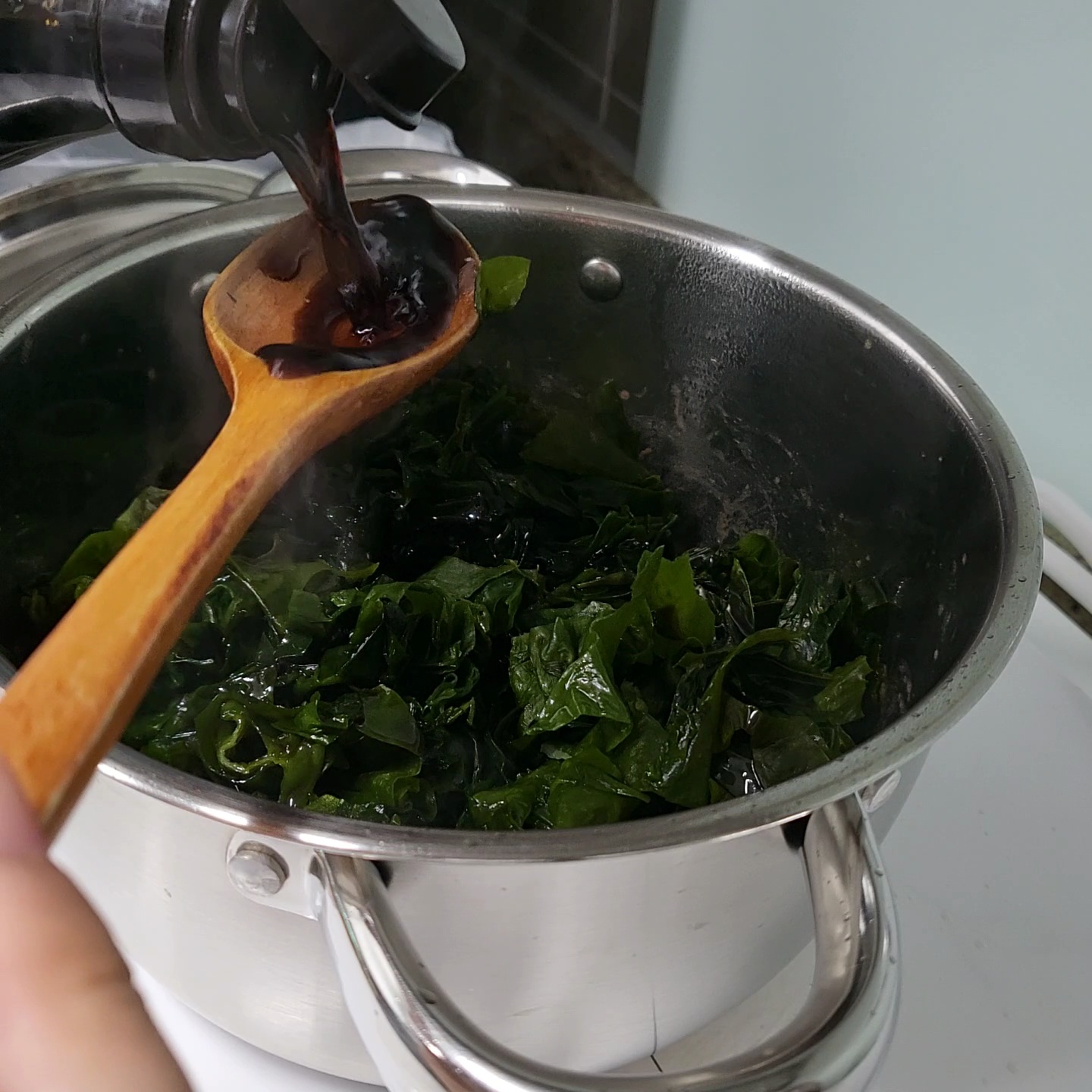 미역을 넣고 함께 볶아 숨을 죽입니다.