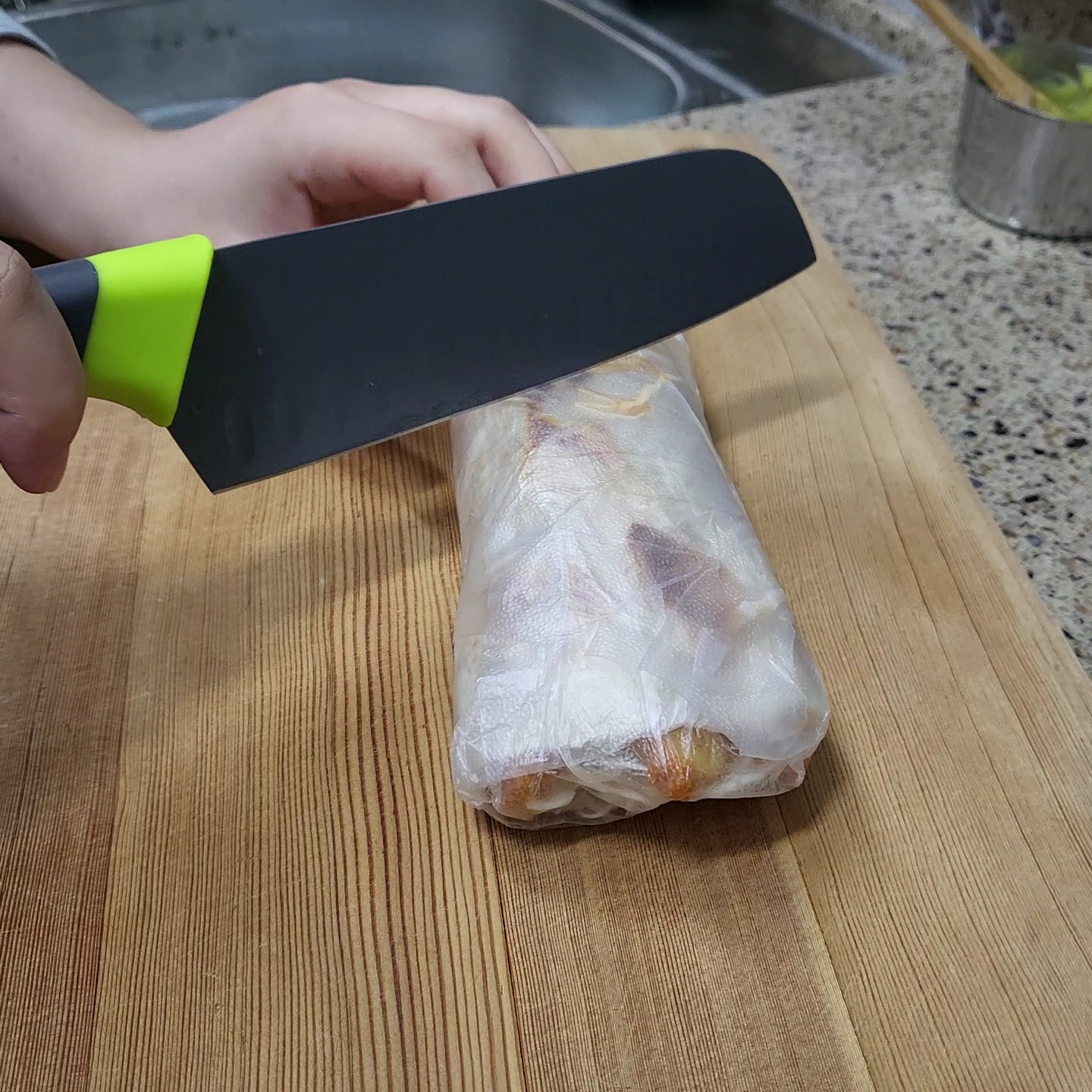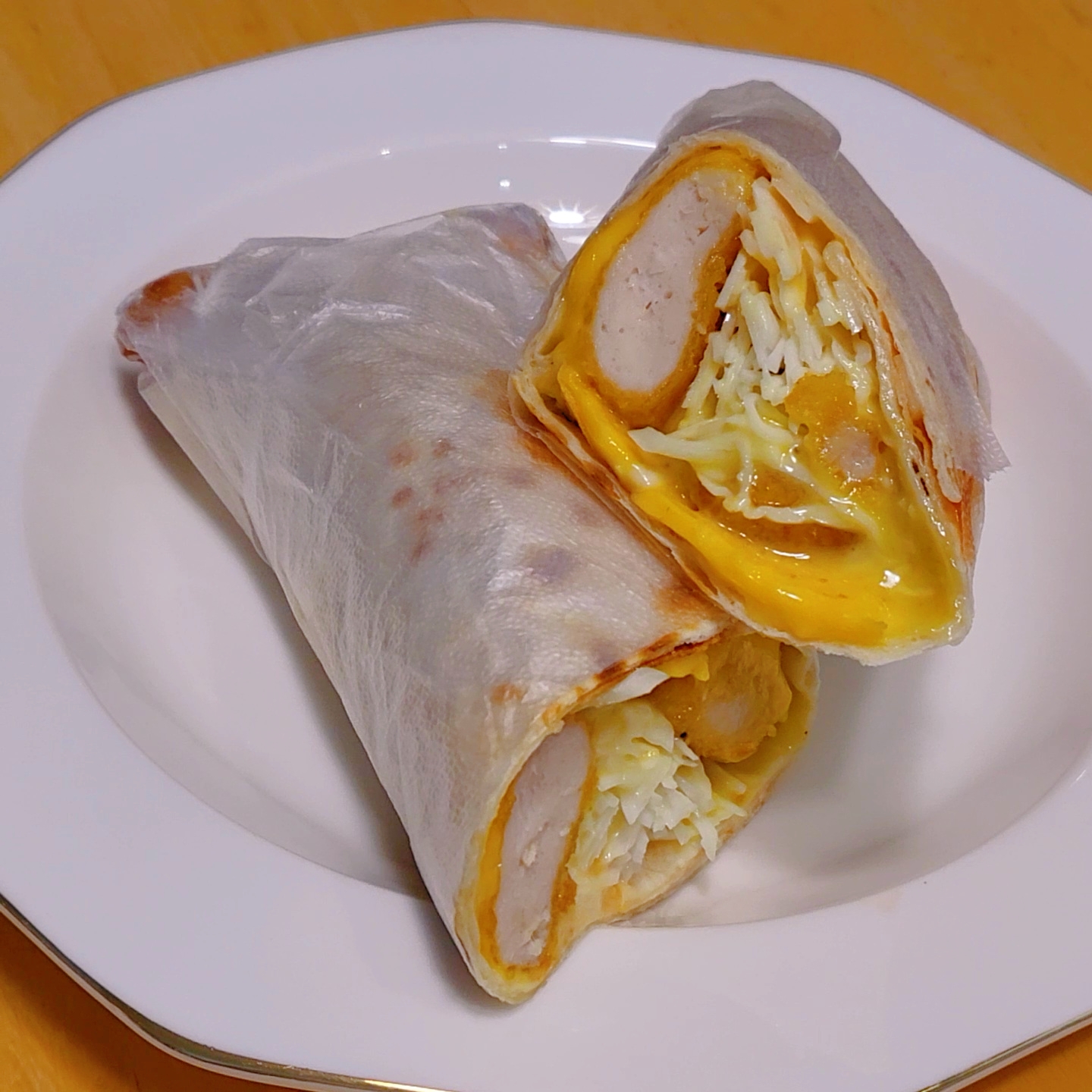 속이 꽉찬 치킨텐더또띠아랩이 완성되었습니다. 🤩
